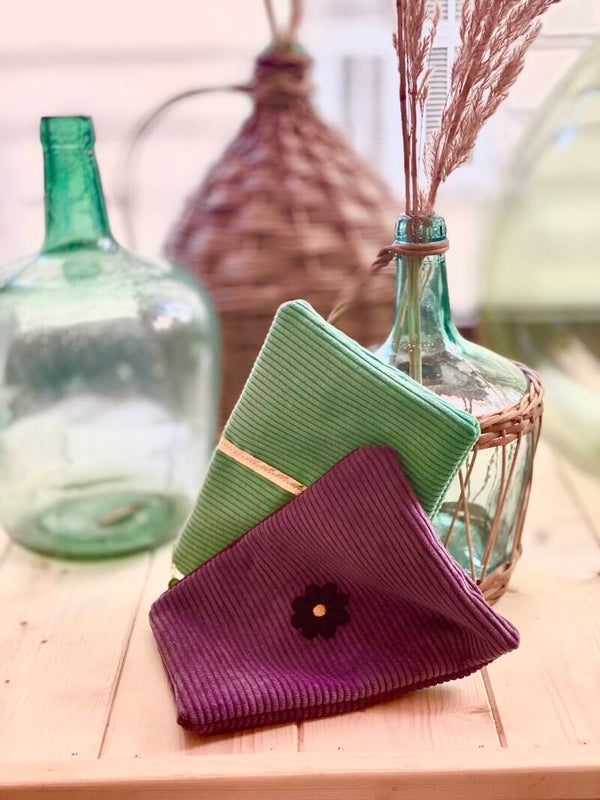 Pochette plate en tissu de velours à transporter partout avec soi.