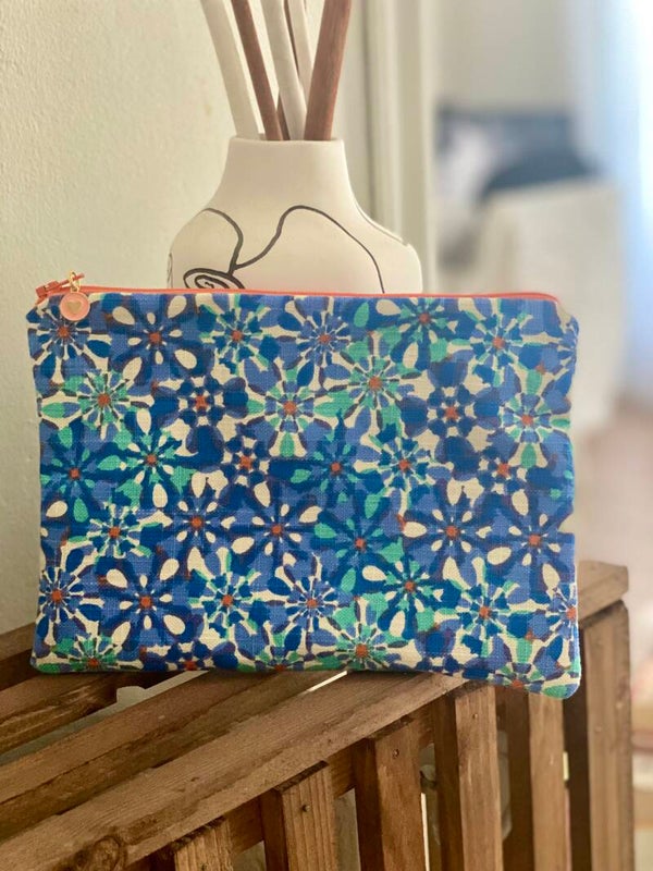 Pochette plate en tissu de coton bachette à transporter partout avec soi.