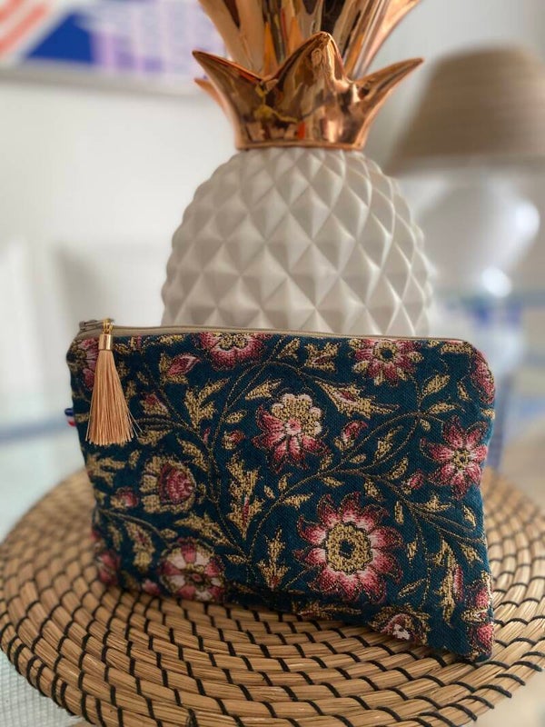 Pochette plate en tissu jacquard brodé à transporter partout avec soi.