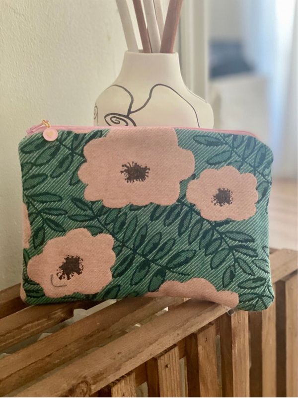 Pochette plate en tissu jacquard brodé à transporter partout avec soi.